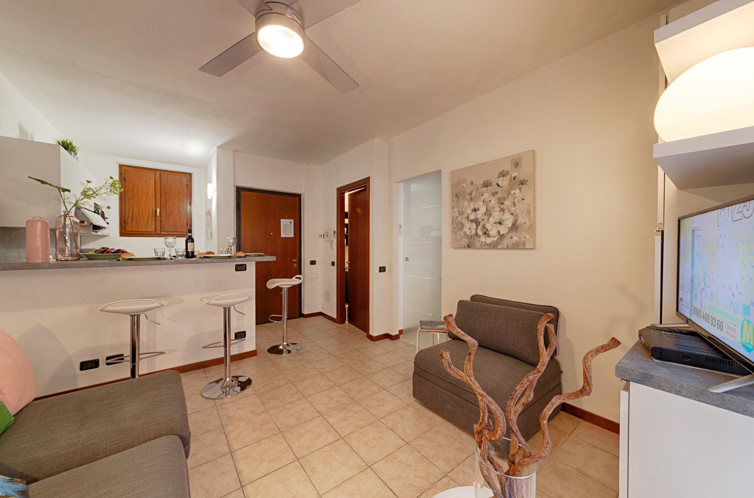Die Wohnung ist modern eingerichtet und befindet sich im Erdgeschoss einer Wohnanlage im Dorf San Siro (CO).