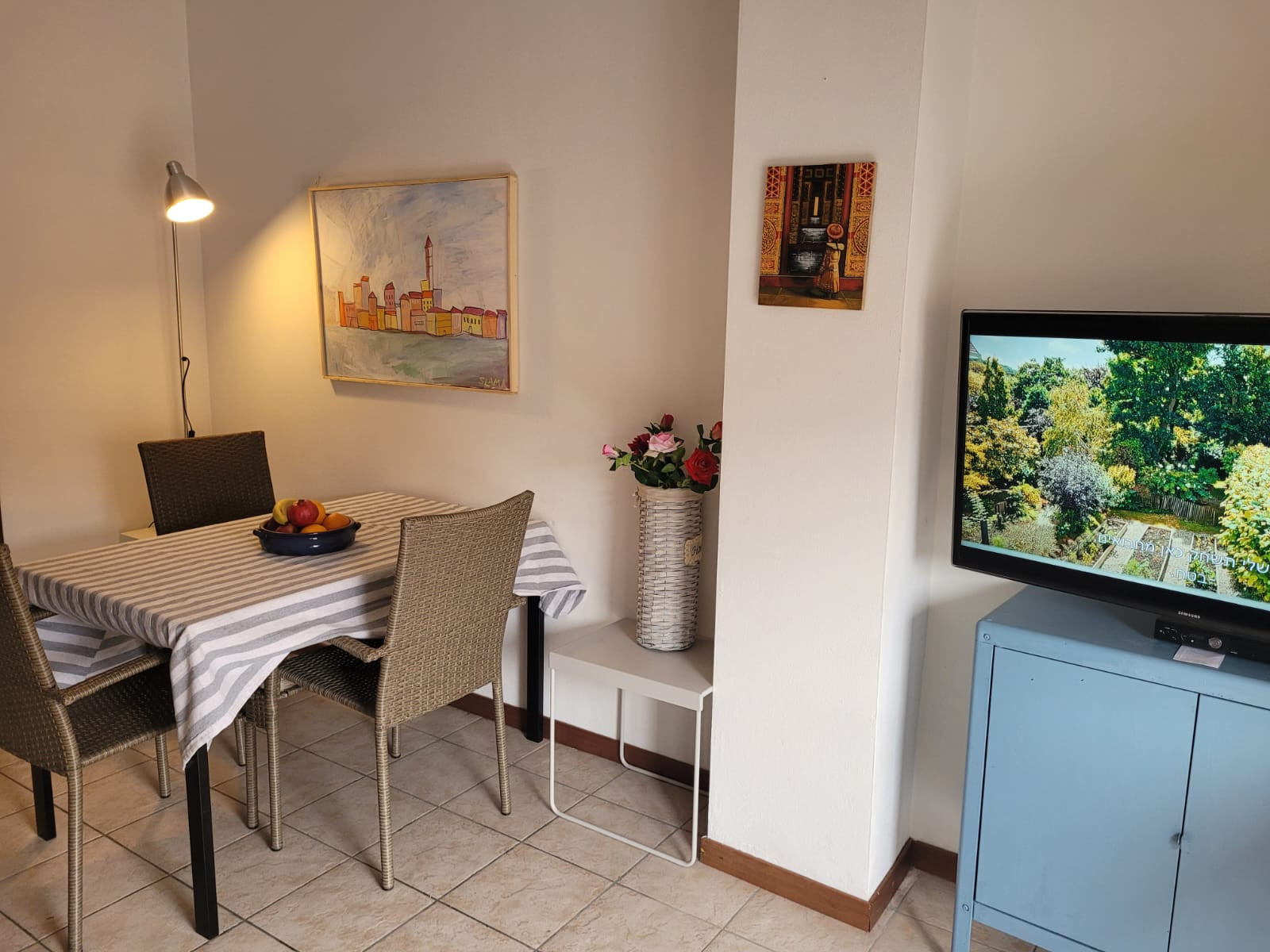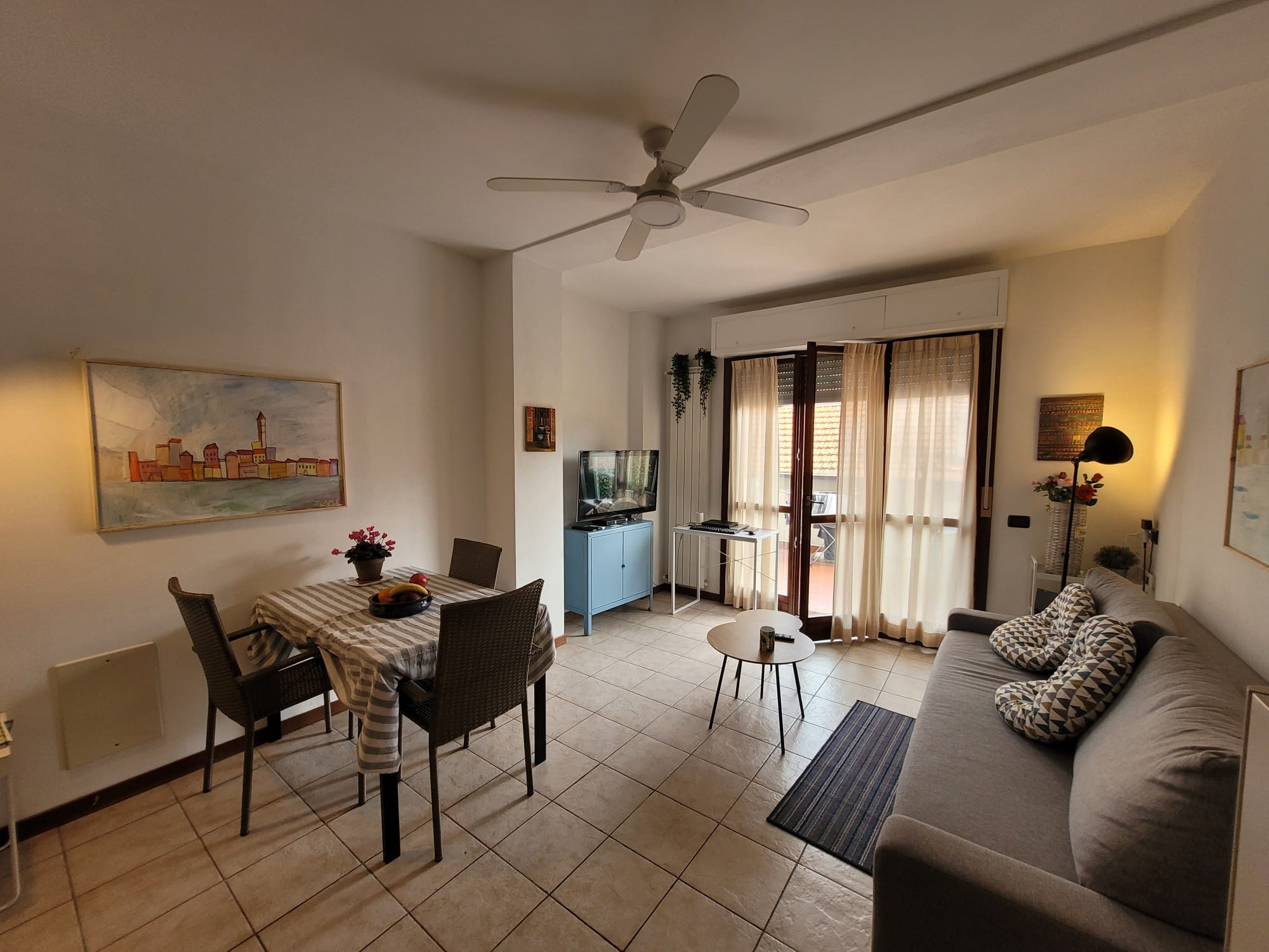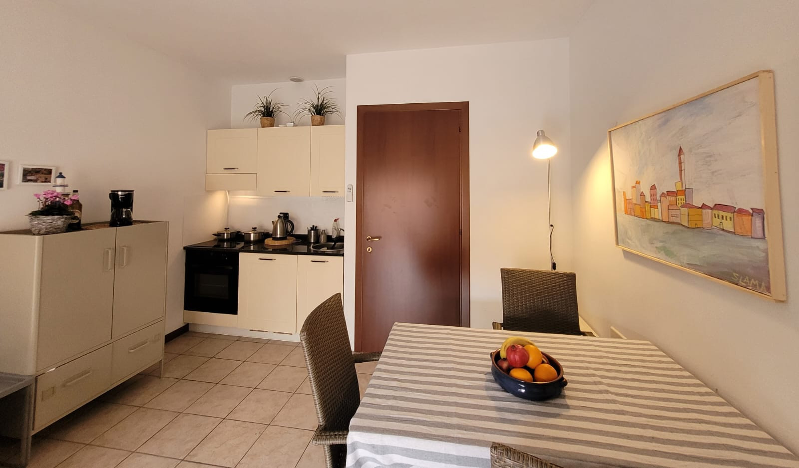 Farbenfrohe Einzimmerwohnung mit Vintage-Elementen für 2 Personen in schönes Dorf Acquaseria. Mit Balkon und einem Teilweise Seeblick auf beiden Seiten und nur 1 Gehminute vom Strand entfernt. Ein überdachter Parkplatz in der Nähe des Gebäudes ist inbegriffen.
