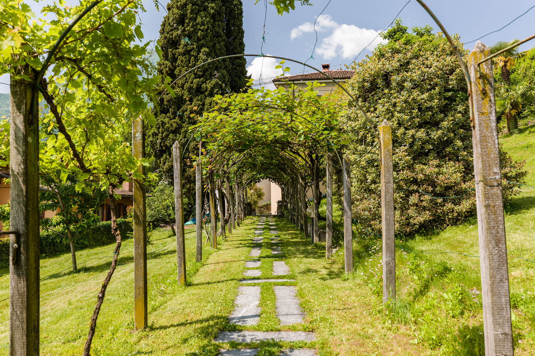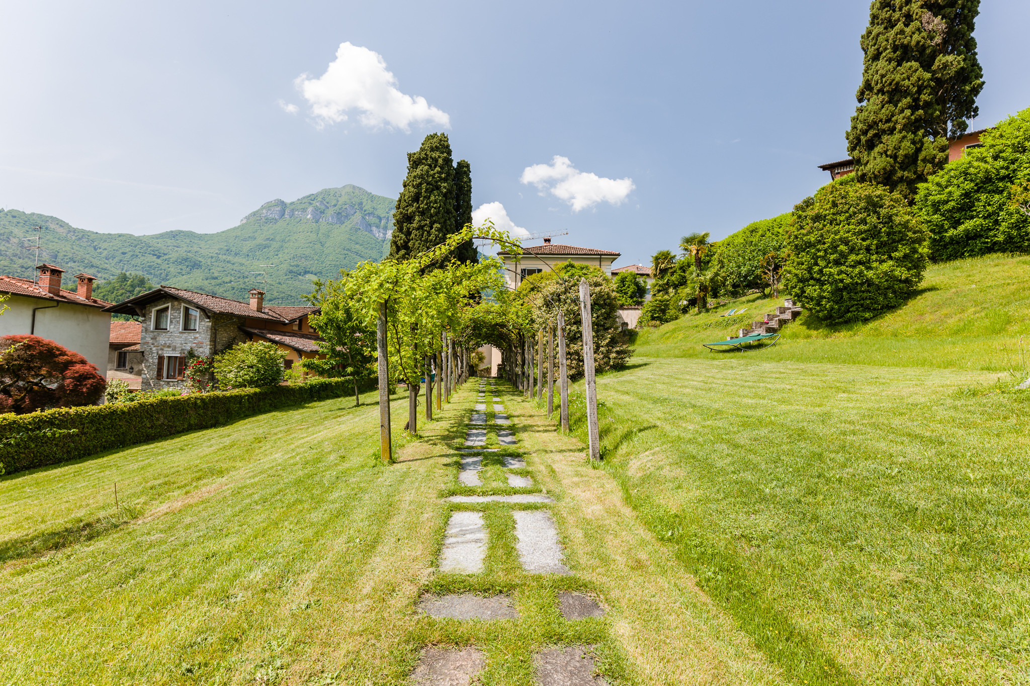 The 2500 square meters garden, spread across several levels comes with various flower beds, a large lawn and nice areas to enjoy the greenery and panoramic views of the lake and scenery surrounding the property. The garden comes with outdoor furniture and sun beds.