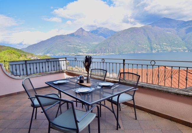 The apartment boasts a delightful private balcony with stunning mountain and lake views, allowing you to soak in the breathtaking landscape of Lake Como. A well-maintained garden surrounds the property, providing a serene outdoor space with garden furniture where you can relax and unwind.